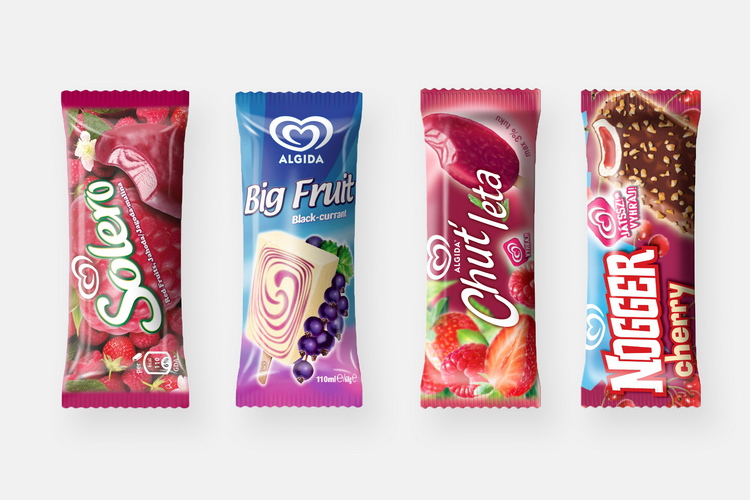 Grafické úpravy a jazykové lokalizace obalů produktů ALGIDA