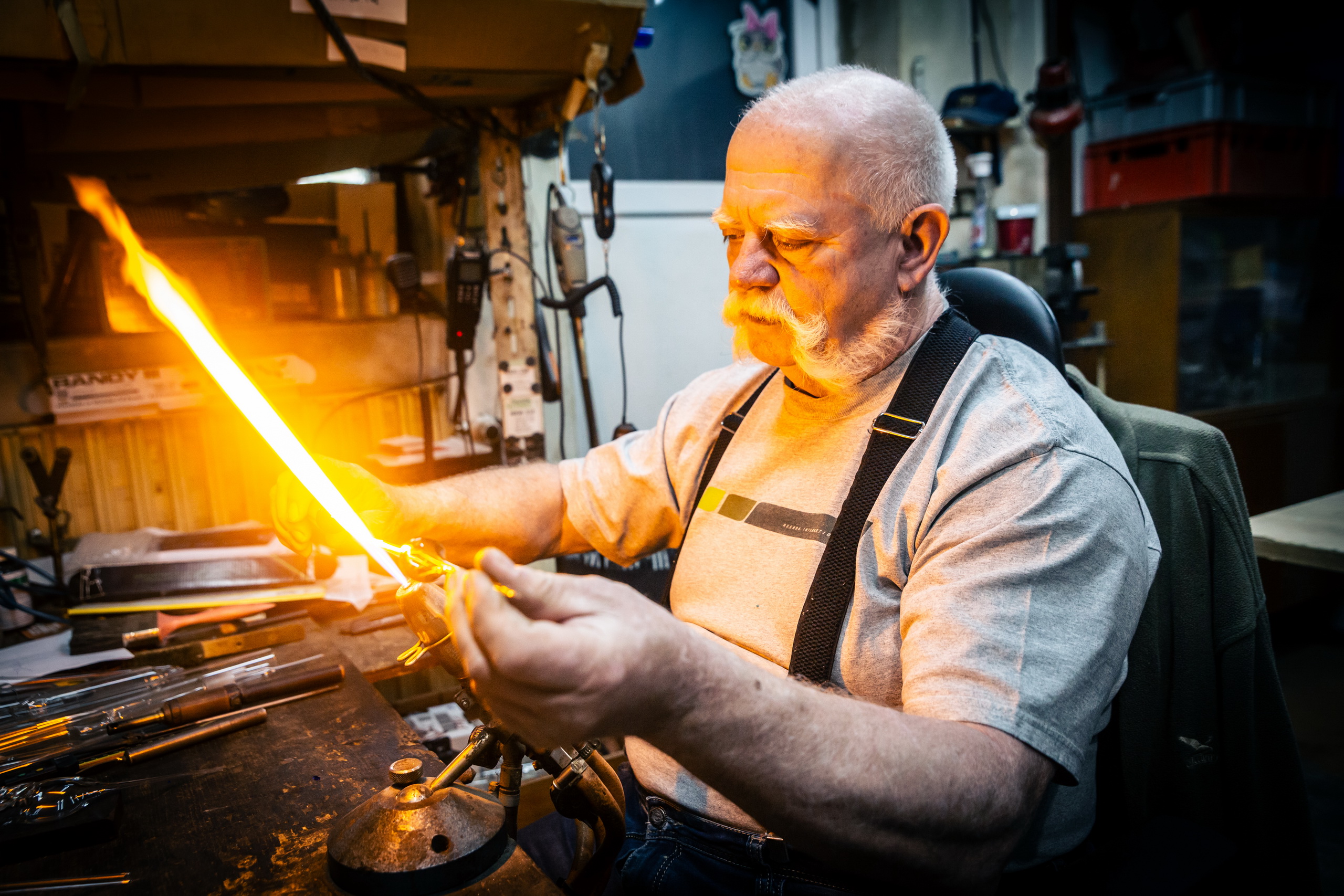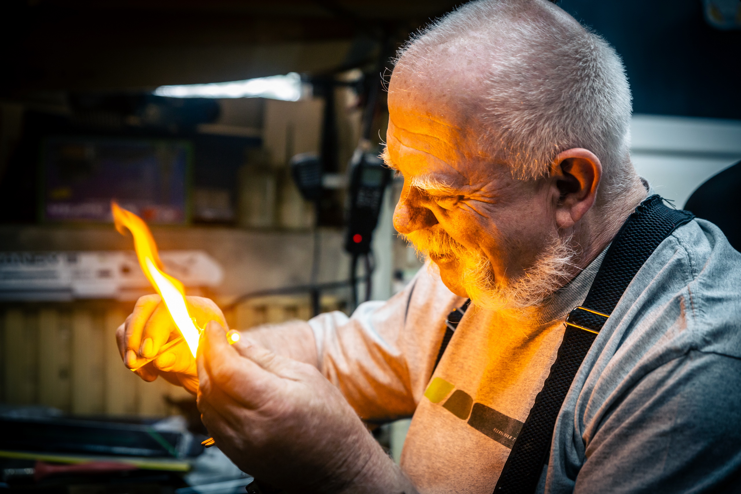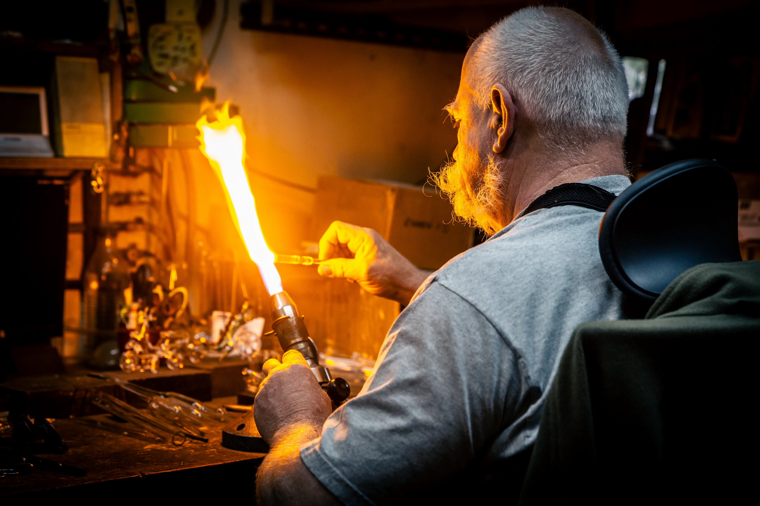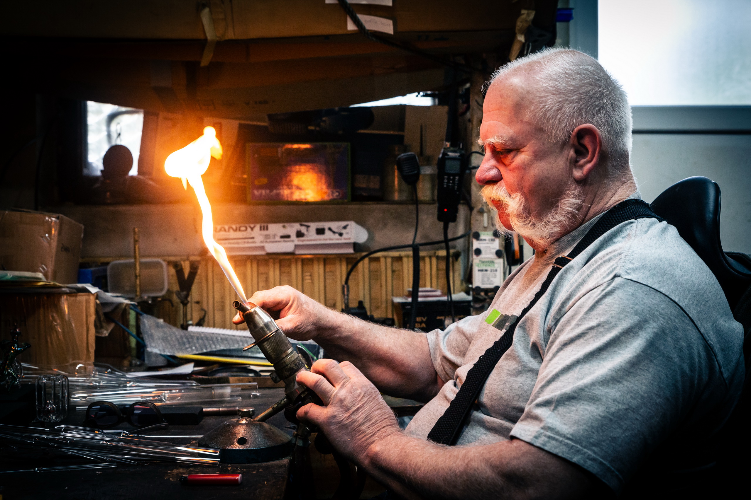 Michal Zahradník – z boží vůle sklář. Fotoreportáž o člověku, který jako jediný na světě vyrábí plně funkční skleněné modely parních lokomotiv, automobilů a různých dalších strojů.